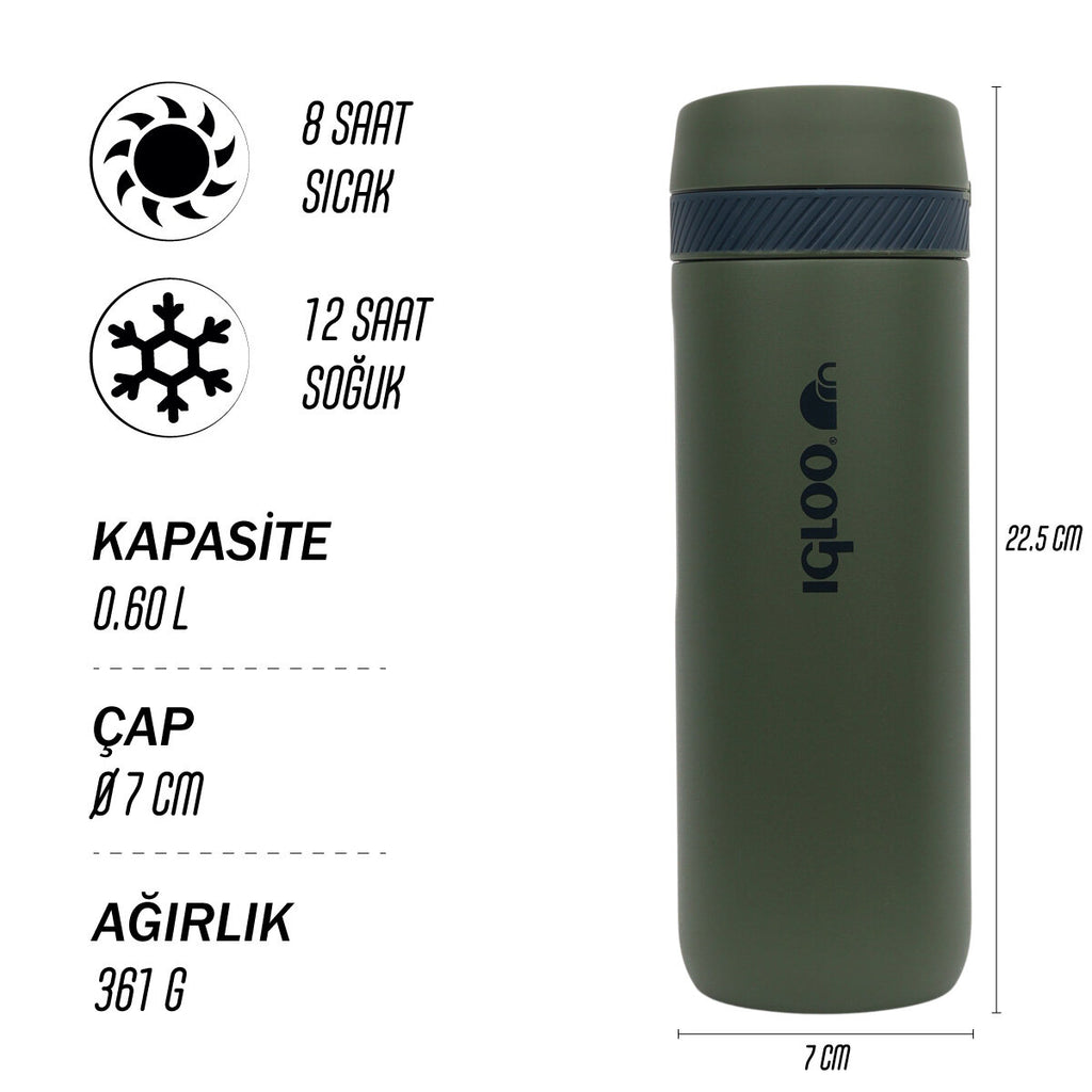 Çift katmanlı vakum yalıtımı sayesinde içecekleri ısı değişiminden korur. Sıcak içecekleri 8 saat, soğuk içecekleri 12 saat muhafaza eder.